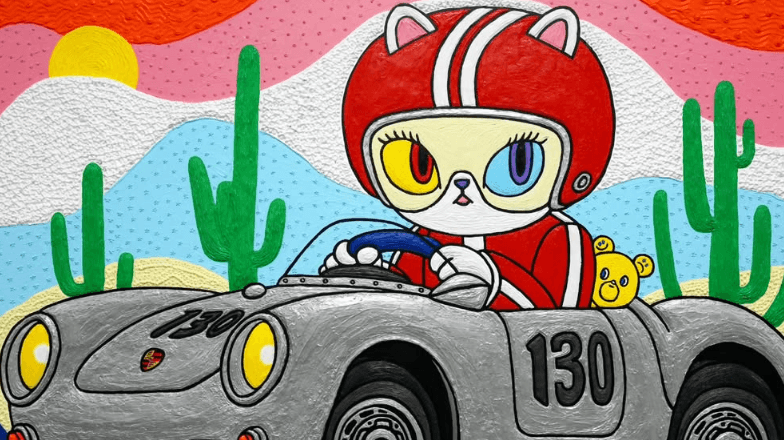 작품을 보면 고양이랑 곰이 등장하던데, 특별한 의미가 있어? 있지. 20대부터 40대까지 나를 대변하는 일종의 페르소나 들이야. 지금도 사실 모두 공존하고 있긴 해. 고양이는 사랑을 상징해. 모티브는 엄마야. 예전에 숙종이 키우던 고양이 이야기 알지? ‘금손’ 이라는 고양이가 있어. 왕은 외롭잖아. 근데 고양이는 왕이라는 개념이 없어. 그냥 와서 재롱 부리고, 위로가 돼. 나한테도 당시 그런 사랑이 필요하다고 느꼈던 시기에 작업으로 풀었어. 곰은 아빠의 이미지야. 고양이처럼 날카롭기보다 푸근한 느낌. 달빛을 받아 노란색이 된 설정이고, 웃는 얼굴이랑 우는 얼굴이 같이 있어. 풍요를 기원하는 존재이기도 해. 그 당시 이런 삶을 원해서 투영해 그린 것 같아. 진행하던 작업 중에 가장 인상깊었던 프로젝트가 있었어? 작년에 지드래곤 관련 프로젝트를 했어. 팝업 굿즈랑 브랜딩 작업이었는데, 그게 전환점이었어. 그전에는 작품 만드는 데만 몰두했거든. 고립되는 느낌이 들더라. 근데 그 작업을 하면서 외부랑 연결되는 게 재밌더라. 올해는 그 방향을 더 해보려고. 작업을 하면서 조바심이 났거나 부담감 때문에 일을 망쳤던 경험이 있어? 어. 그런적이 많지. 완벽주의 성향이 있어. 기준이 너무 높아. 한 번에 완성하려고 하니까 힘들어. 요즘은 조언을 듣고 단계별로 완성도를 올리려고 해. 힘든 시간들이 찾아올 때 어떻게 극복하는지가 궁금해 위기상황을 감지하면 방향을 바꿔. 지금 하고 있는 일을 끝까지 밀고 가기보단 다른 작업으로 시선을 돌리는거야. 예를들어 페인팅하다가 브랜드 작업하고, 외부 협업하고. 멈춰 있기보단 다른 길을 찾는 편이야.