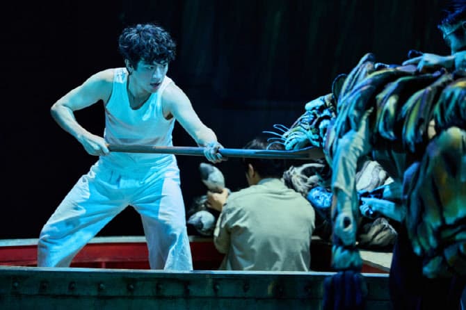 뮤지컬은 이 이야기를 압도적인 무대 언어로 구현한다. 정교한 퍼펫과 앙상블의 움직임, 바다를 형상화하는 조명과 음향은 생존의 시간을 체감하게 만든다. 특히 리처드 파커의 존재는 단순한 동물이 아니라, 파이의 공포와 본능, 그리고 살아남고자 하는 의지의 상징처럼 읽힌다.